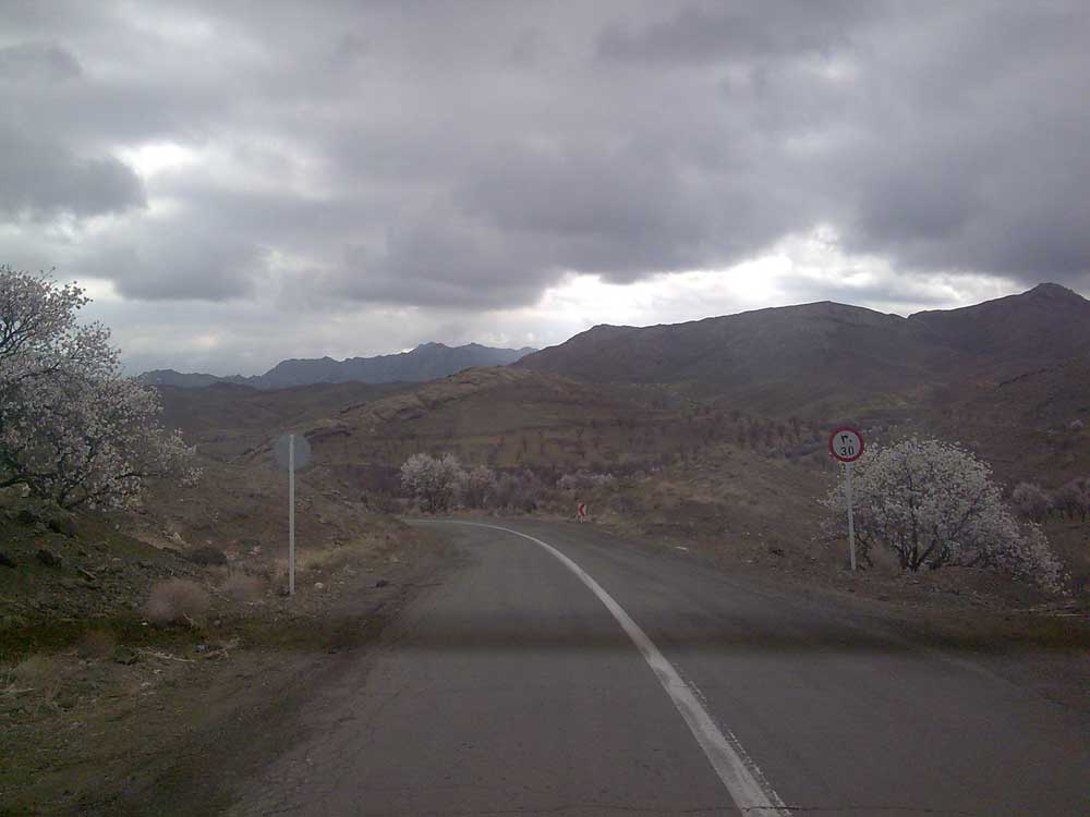 عکس سوم به نظرم از شیشه عقب ماشین گرفته شده. پس حتما شما عقب نشسته بودید. با این تفاسیر رانندگی نمیکردید. پس احتمالا گواهینامه نگرفتید. یا شایدم گرفتید ولی هنوز با ترس و لرز پشت فرمون میشینید.هوا هم که ابری بوده. به نظر میرسه بعدش بارون سنگینی اومده. پس اون شکوفه هایی که توی تصویر دیده میشه همگی دچار سانحه شدند. وای به حال صاحبان درخت.باز هم ضرر کردند. آخه عدالت خدا کجا رفته. چرا کشاورزا و باغ دارا رو اذیت میکنه خدا. یعنی این بارون به نفعشونه یا نه؟………………………………………………………………………..