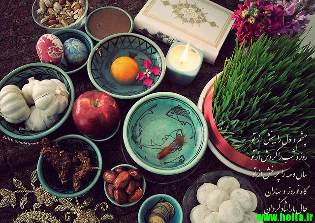 بنام خدا / درودبر محمد عزیز بسیار عالی بود امید است با استعانت از درگاه حق دلی را نشکنیم و قلبی را نیازاریم و توکل را از یاد نبریم. تو نیکی میکن و در دجله انداز // که ایزد در بیابانت دهد باز. جناب کامیاب گلم سفره هفت سینت در عین سادگی بسیار زیباست اما آن پیاله ما بین سیر و سنجد نفهمیدم جی داخلشه اگه توضیح بفرمایید ممنون میشم :gol: :SS: