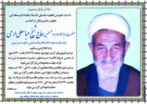 بدین وسیله درگذشت حجه الاسلام حاج شیخ عباسعلی ارمی را به اطلاع می رساند. گروه حیتا مصیبت وارده را به خانواده های مصیبت زده تسلیت عرض نموده و ازخداوند متعال برای آن مرحوم علو درجات و غفران و رحمت ابدی و برای سایر بازماندگان صبر جمیل و اجر جزیل آرزومند است.